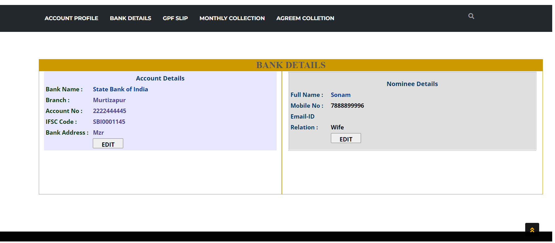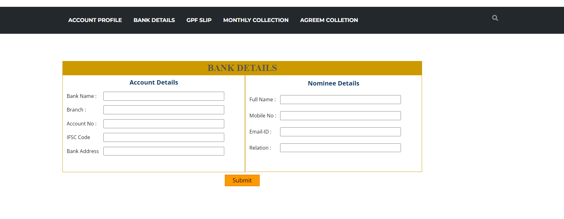 Step 2) After Login click on Bank Details link and the enter all bank details and click on submit button to save record.